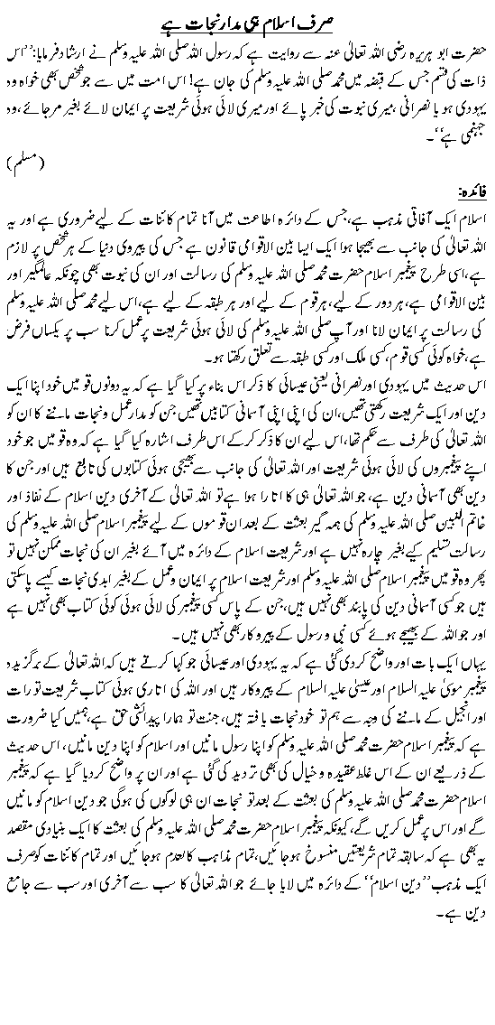 • Sirf Islam Hi Madar-e-Nijaat Hay