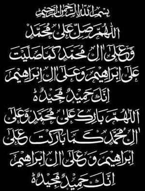 اللھم بارک علٰی محمد وعلٰی آل محمد کما بارکت علٰی ابراھیم وعلٰی آل ابراھیم انک حمید مجید۔