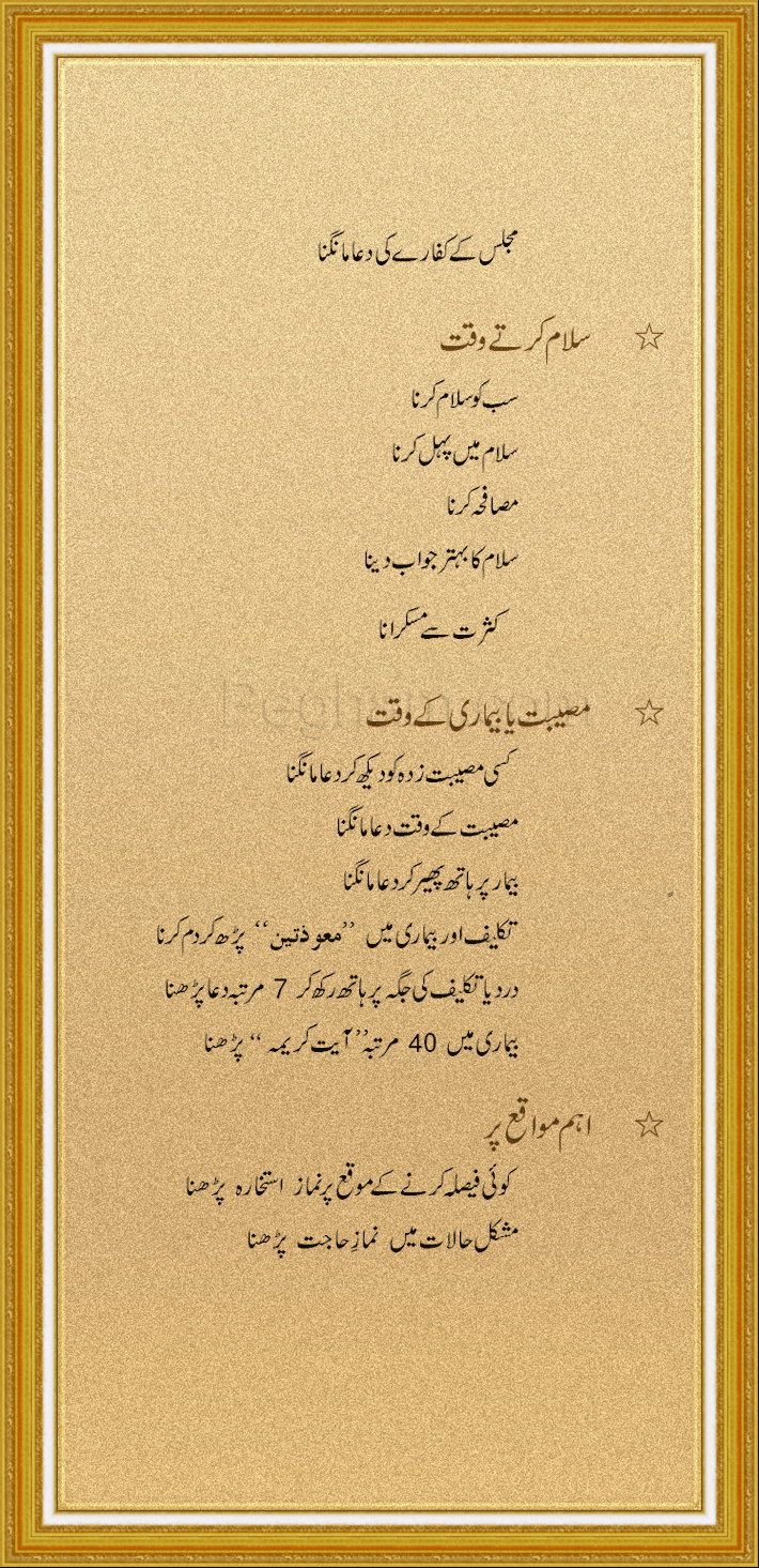 Re: Check list .!! according Sunnat-e Rasool SAW
