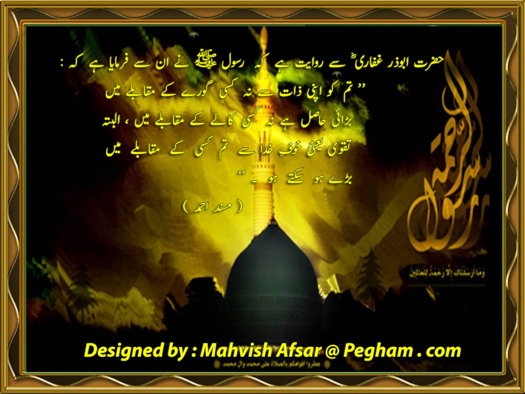 SUBHAN-ALLAH bohat hi khoobsurat designing ki hay. Color combination, background image aur hadidh-e-nabwi ka intikhaab, font aur border bohat hi khoobsurat hay.....