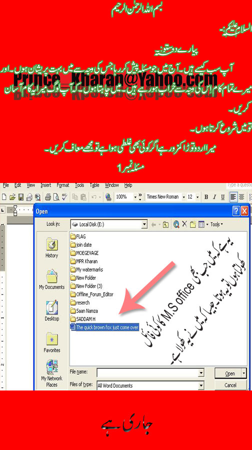 Assalamoalaikum meray bhaeio meray sath bhi Mengal sahib wala masla hay .Please ham ko bataoo kia kareen word meen kia howa sara kam Khrab ho chuka hay Please Save us from this probles