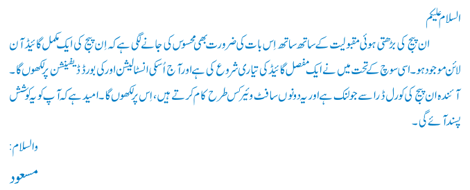 Fantastic job done Masood , I would like to stick the thread on permanent basis so that we can promote Urdu Writing around our forum ... so that members can learn and leadthanks for sharing such a fantastic info be blessed :rose