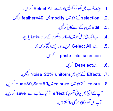 ham nai tasweer ko paintshop say old effect day bhi day saktay hain.. :)