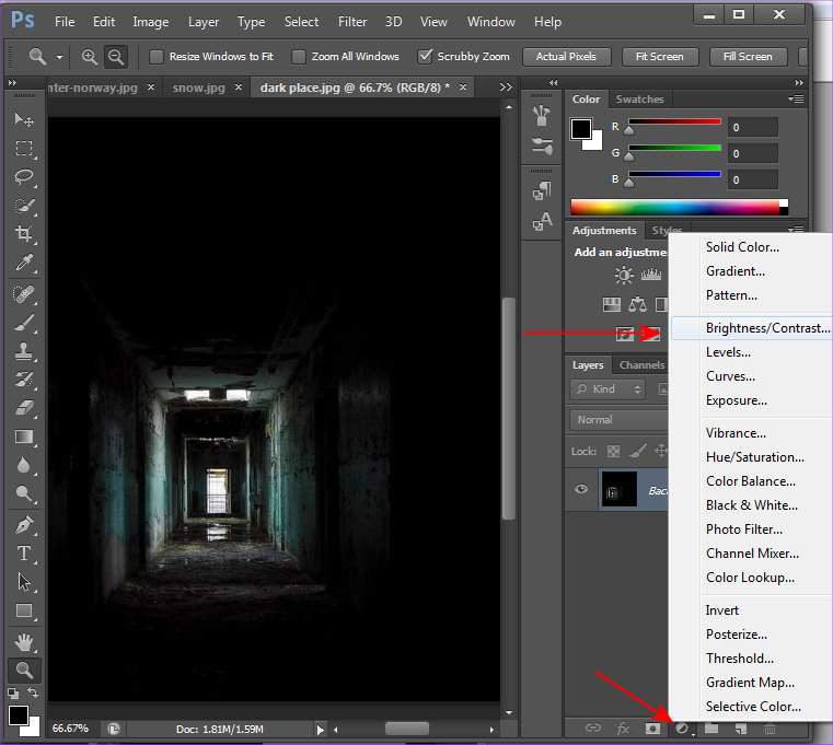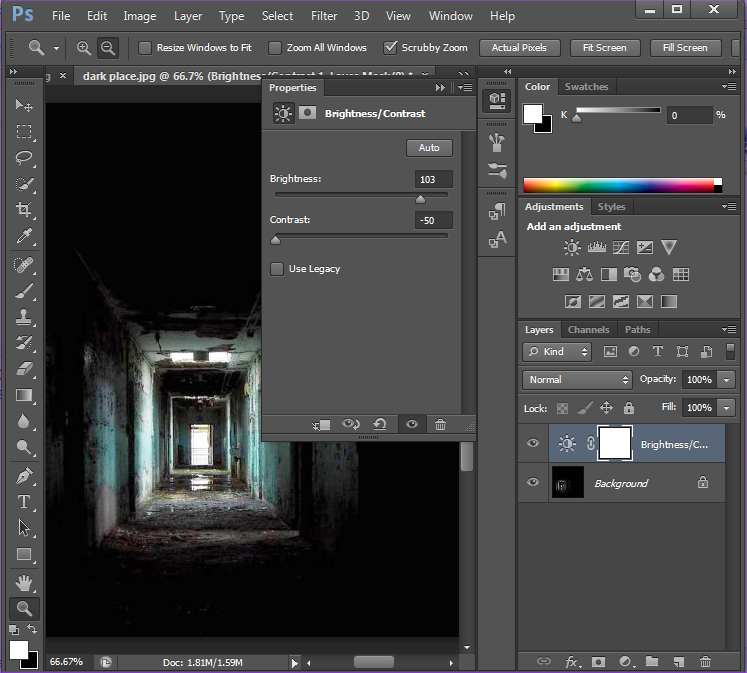 - go to new fill layer from the drop down menu n choose Bright and contrast