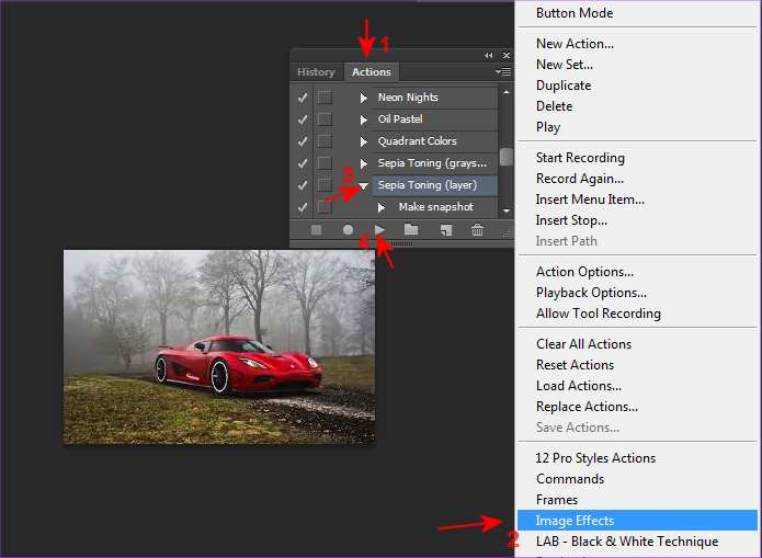 go to Window --- Action platte ---- Image Effect ------ Sepia Tonning layer ---- play selection -----Done
