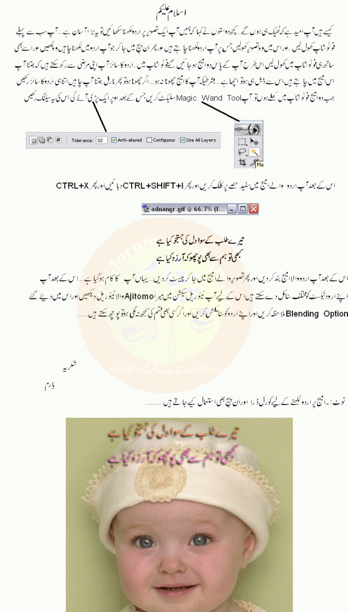 Bhai bohat asan hai :khi: aap Photoshop kholein aur Inpage ki file ko wahan File Menu se ja kar Open par click karne se khol lein :)Originally posted by khlbuhat khoob lakin aap ny bataya nahi k inpage kee picture ko kaisy us main ly ker ana hayAllah
